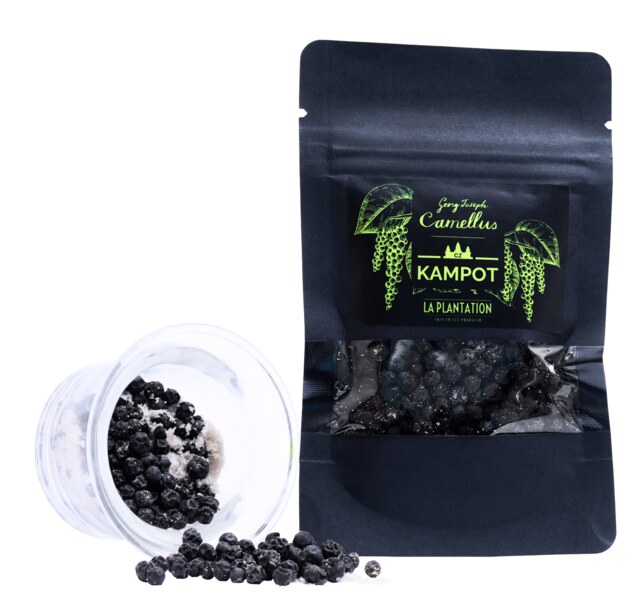 Nejpopulárnější z Kampotských pepřů. To je náš fermentovaný pepř. Sbíraný jako zelené kuličky pravého pepřovníku piper nigrum. Následně se zpracovává přírodní fermentací metodou konzervace mořskou solí. V soli naložený kambodžský pepř si tak zachovává své původní a jedinečné charakteristiky Kampotského pepře.