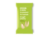 Složení: Datle 50%, pistácie 20%, rozinky 20%, tigernuts (tygří ořechy - šáchor jedlý) 10%.