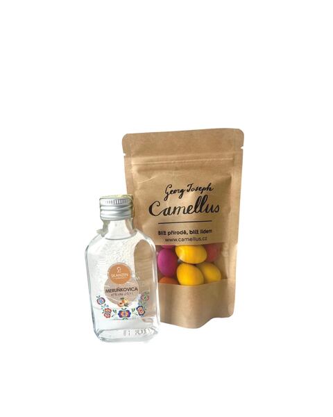 Meruňkovica 47% 0,1l. Ušlechtilý destilát vyrobený z meruněk s vysokou cukernatostí, pěstovaných na Slovácku. Pálenka vyrobená dvojnásobnou destilací s obsahem alkoholu 47% v decentním malém balení.