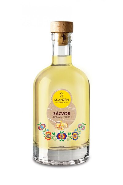SKANZEN ZÁZVOR - tradiční slovácká receptura od našeho páleničáře v 0,35l balení. Vínovice, čerstvý strouhaný zázvor, citron a med přímo od včelaře. Proč vínovice? Protože je chuťově nejjemnější.